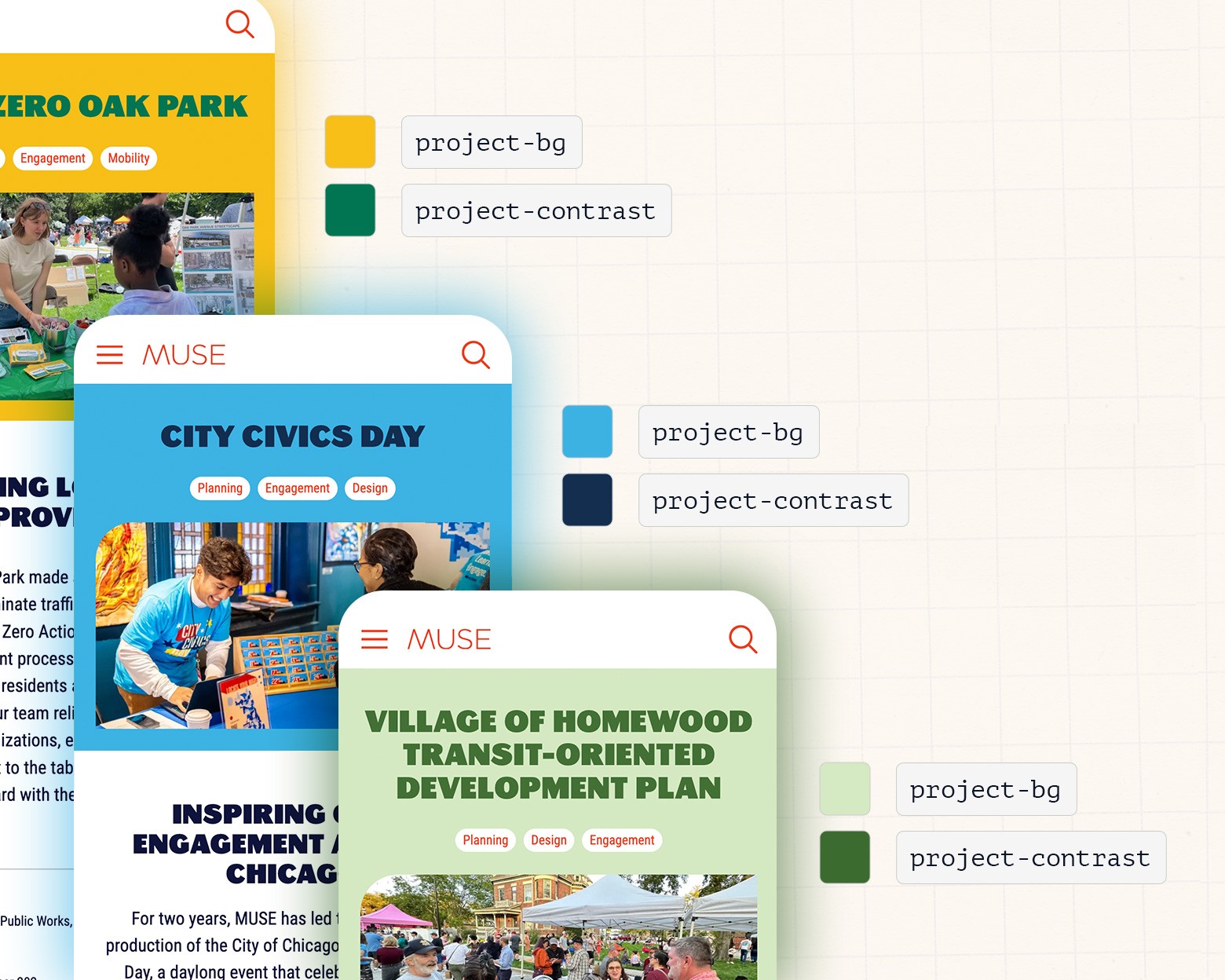 One feature the MUSE design team was especially excited about is the ability to select custom colors on project detail pages. This flexibility allows each project to feel unique, reflecting its distinct identity while still staying within the overall design system.